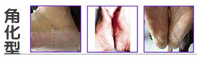 3、角化型脚气:好发于足跟。主要表现为皮肤粗厚而干燥,角化脱屑、搔痒,易发生皲裂。本型无水疱及化脓,病程缓慢,多年不愈。